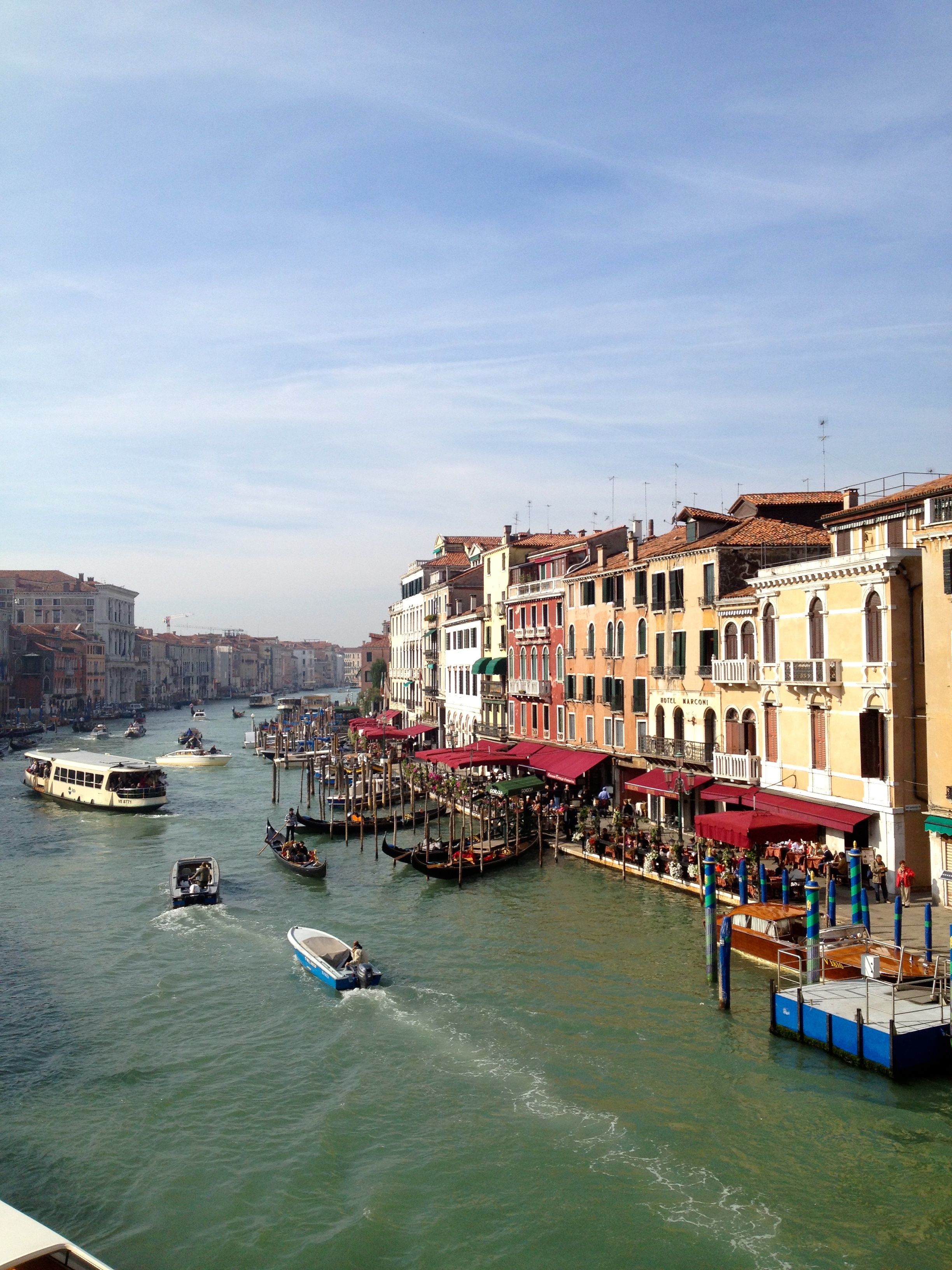 After breakfast, we went on to see the rest of the sights. In my previous post, I mentioned how I think of Venice as a painting and I realized it’s even more so in the morning! Its colors become more alive and vibrant! One of the main attractions in Venice is the Grand Canal and the Rialto Bridge and it was just packed with tourists. Everyone just wants to get here as it also gives you a scenic view of the whole stretch of the city.